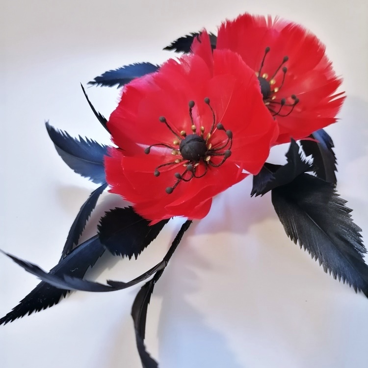 Aplique para hombro. Este aplique esta formado por dos amapolas de plumas y ramas de hojitas tambien de plumas. Tanto las amapolas, las ramas de hojas como el montaje del aplique se ha hecho completamente a mano en el taller de Elche. Se puede hacer en cualquier color o combinacion de colores. El precio incluye IVA. La web es solamente informativa, no se puede comprar. Para compras por whatsapp 651758623 o email julietaelx@gmail.com