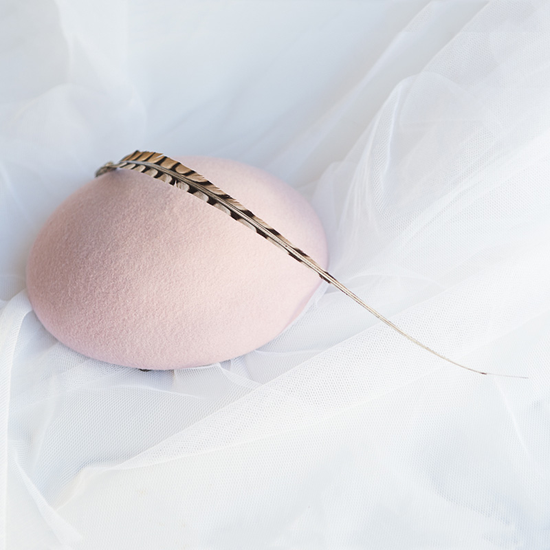 Boina de fieltro en rosa empolvado, ahormada y cosida integramente en nuestro taller.