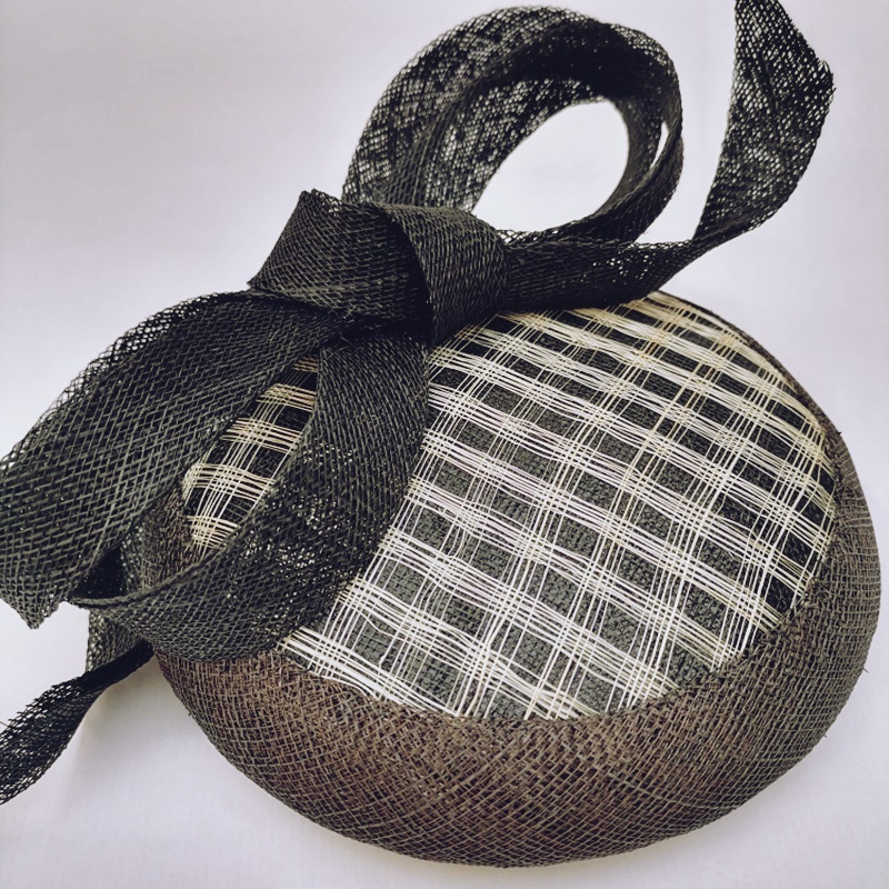 Casquete redondo con adorno de lazada. Disponible en cualquier color o combinacion de colores. Este tocado a sido ahormado y cosido iintegramente a mano en nuestro taller de Elche. Todos los tocados se tiñen en el color deseado en nuestro taller. El precio incluye IVA