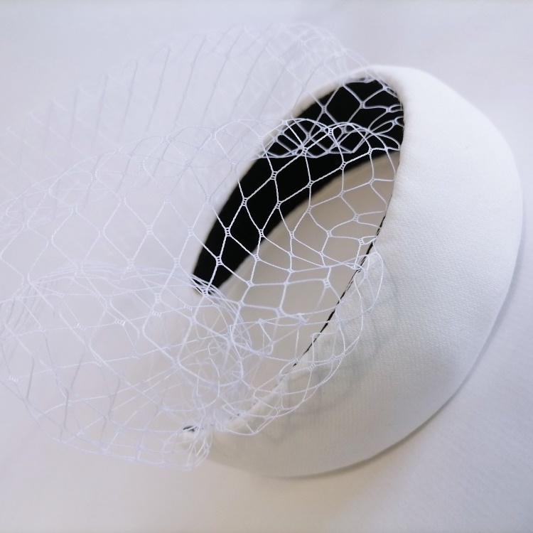 Diadema artesanal forrada en crep de seda y adornada con velito. Se puede hacer en cualquier color y otras medidas de ancho. Los tocados los hago personalizados, los cambios de color no modifican el precio, cualquier otro cambio puede variarlo. El precio incluye IVA. La web es solamente informativa, no se puede comprar. Para compras por whatsapp 651758623 o email julietaelx@gmail.com