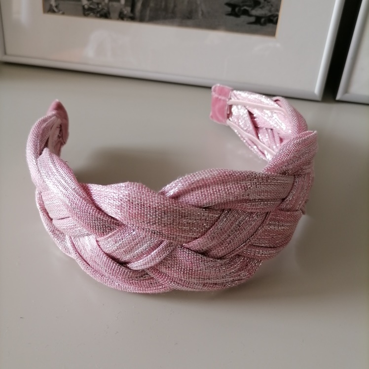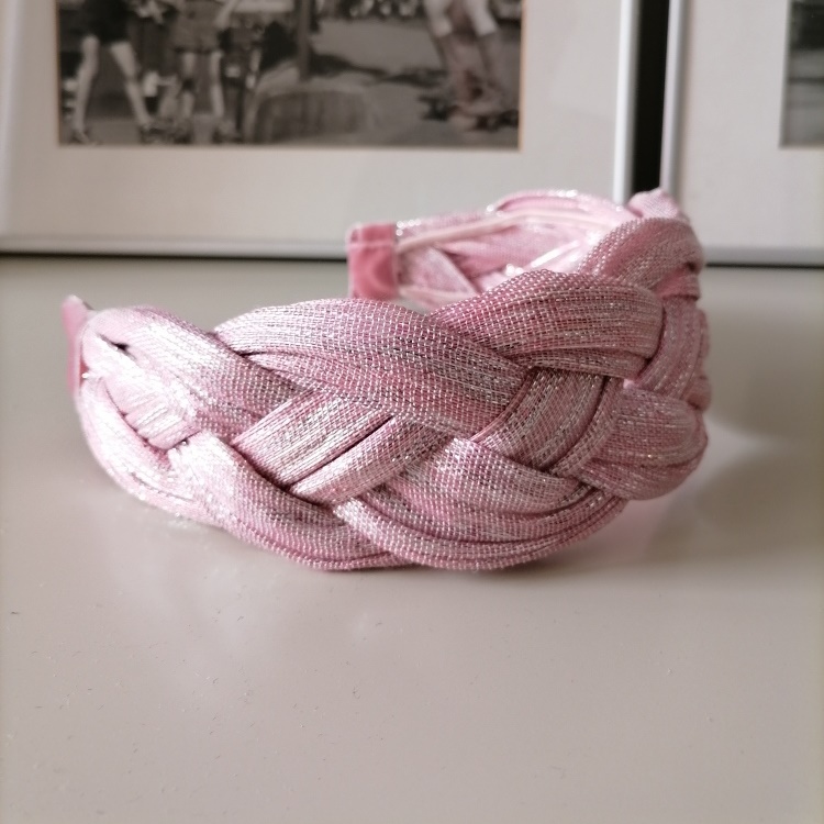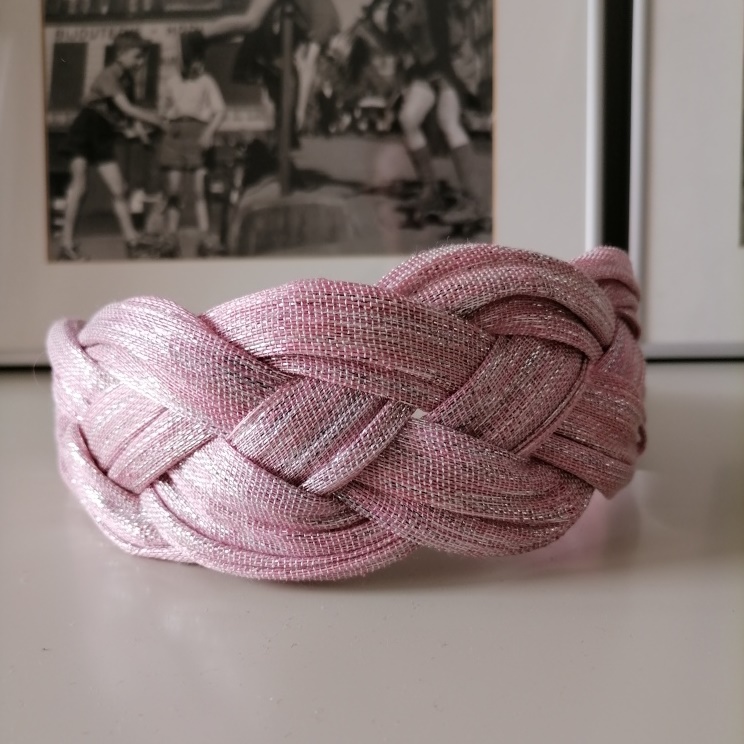 Diadema trenzada en sinamay seda, lleva hilo en plata que le da brillito. Se puede hacer en otros colores tanto con el hilo en plata como colores lisos sin brillo. El precio incluye Iva. La web es solamente informativa, no se puede comprar. Para compras, por whatsapp 651758623 o email julietaelx@gmail.com
