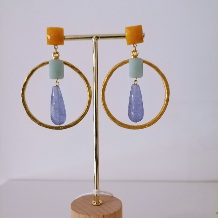 Maxi aros dorados. Medida 7cm. de largo Agatha natural con amazinite y agathas azules. El precio incluye IVA