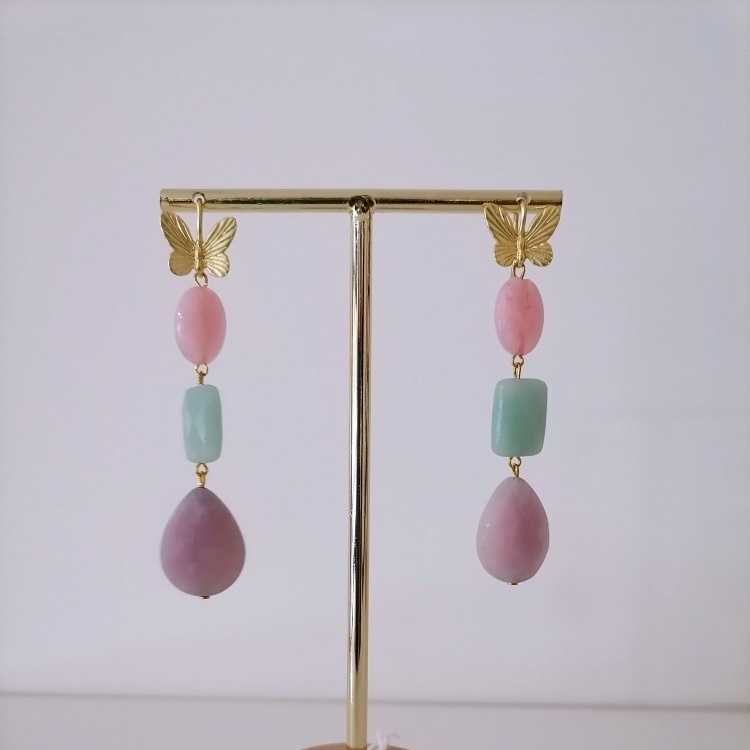 Pendientes con ágatas y amazonita natural. Medida 7cm largo. El precio incluye IVA