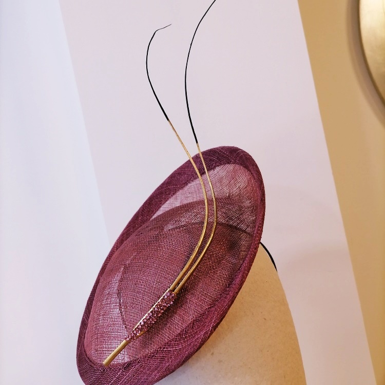 Plato levantado en el extremo superior, adornado con dos raquis dorados y pasador de cristal swarovski en rosa (los cristalitos han sido puestos uno a uno). Medida 23cm. diametro. Se puede hacer en otros colores consultar disponibilidad. Se puede cambiar el adorno de la base (el precio variaría). Sujecion con diadema. La web es solamente informativa, no se puede comprar. Para compras por whatsapp 651758623 o email julietaelx@gmail.com